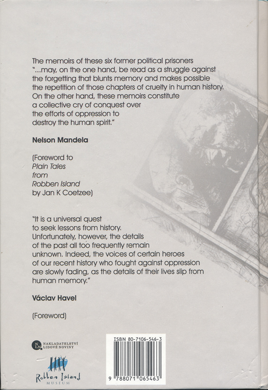 Jan K Coetzee, Lynda Gilfillan, Otakar Hulec. Fallen Walls. Voices from the Cells that held Mandela and Havel. With a Foreword by Vaclav Havel. First Edition. Robben Island, Lidove Noviny Publishing & Robben Island Museum, 2002. 14 x 21 cm, 194 pages with numerous B&W photographs. Original illustrated hardcover. Illustration based on an etching by William Kentridge. Excellend condition. Some shelfwear. Corners and spine a little bumped.