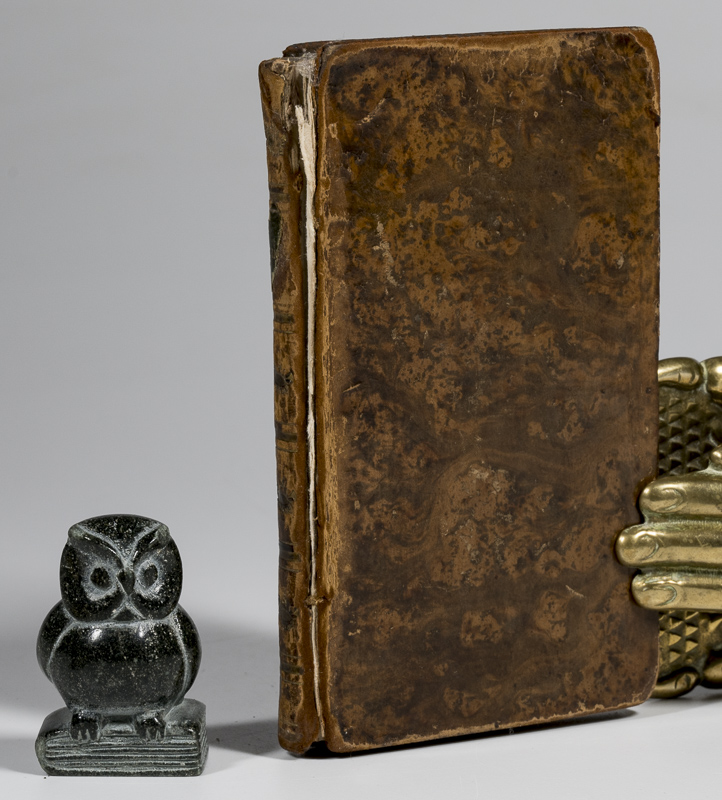 Johnson, Samuel. The Poems of Dr. Samuel Johnson. To which is prefixed a Life of the Author by F.W. Blagdon, Esq. London, Published by W. Suttaby, B. Crosbie, Scatchard, C.Corrall, 1808. 11.5 x 6.5 cm. 84 pages. With a Frontispiece. Contemporary calf. Good condition only. Rubbed and bumped. Age darkened throughout. Front board detached. Ex Libris.
