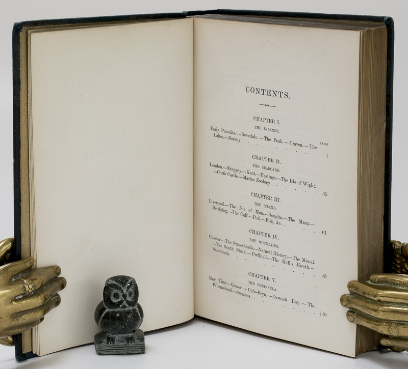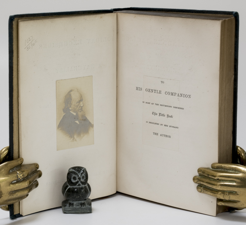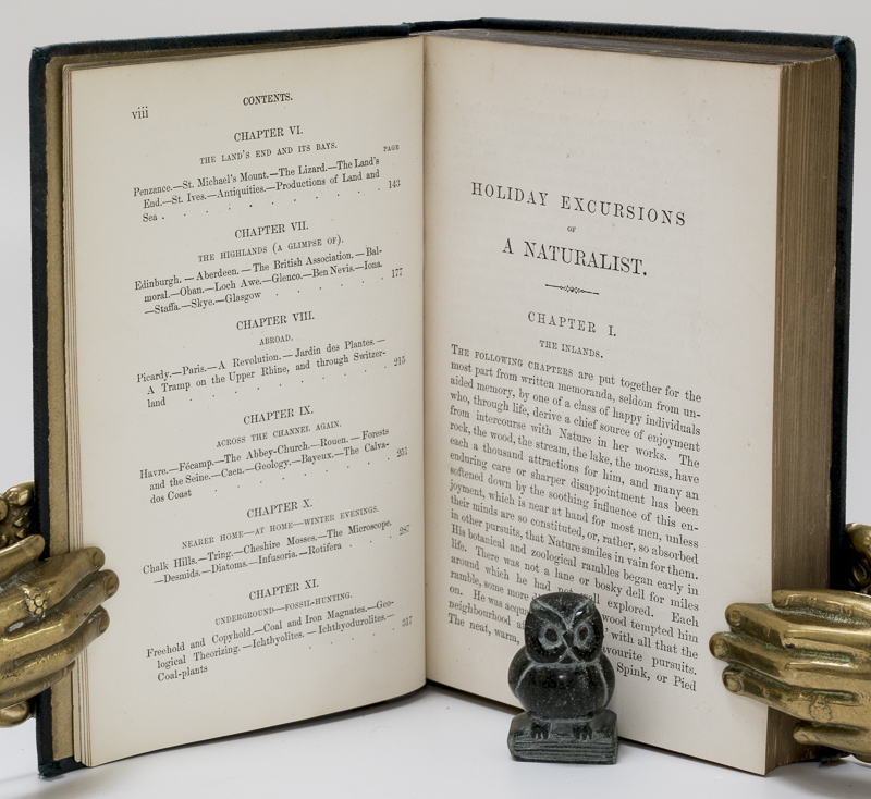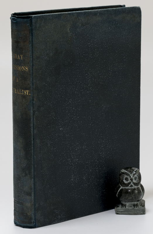 [Hardwicke, Robert]. Anon. Holiday Excursions of a Naturalist. Forming A Guide-Book to the Natural History of the Inland and Littoral. First Edition. London, Robert Hardwicke, 1867. 18 x 12 cm. viii, 345 pages. Publishers List. Contemporary dark cloth. Gilt title on spine. Very good condition. Some shelf wear, rubbing and bumping. Edges and end papers age darkened. Hinges weak. Names of previous owners inscribed. Internally clean.