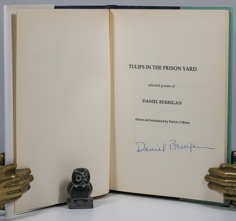 Berrigan, Daniel. Tulips in the Prison Yard [Signed]. Selected Poems of Daniel Berrigan chosen and introduced by Patrick O’Brien. First Edition. Dublin, The Dedalus Press, 1992. 21 x 14 cm. 77 pages. Hard cover, inside original unclipped dust jacket. Near fine in near fine dust jacket. A very nice copy. Signed by the Author on the title page. From the library of Irish Poet Paul Durcan.