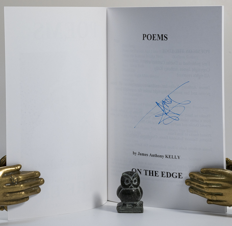 Kelly, James Anthony. Poems on the Edge [Signed]. First Edition. Dublin, Published by the Author, 1997. 21 x 14 cm. 44 pages. Original trade paperback. Very good condition. Signed by the Author on the title page.