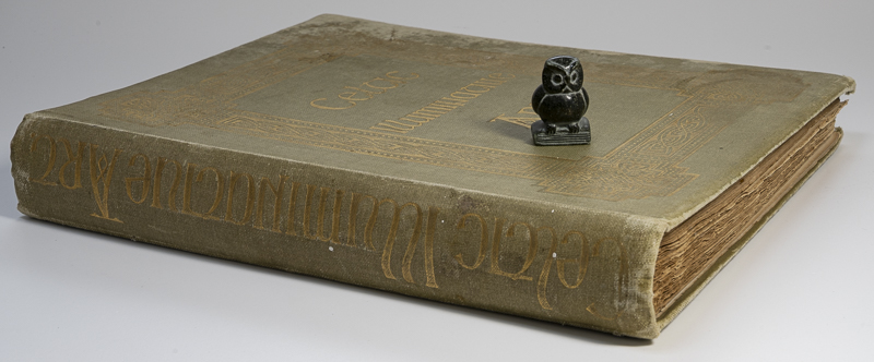 Robinson, The Rev. Stanford F.H. Celtic Illuminative Art. In the Gospel Books of Durrow, Lindisfarne, and Kells. First Edition. Dublin, Hodges, Figgis, & Co., 1908. 34 x 28 cm. xxx, unpaginated. Numerous plates, some in colour. Original cloth with gilt titles and decorations. Good condition only. Binding poor with damp stains and strong fading to parts (see images). End papers age darkened / stained. Internally clean. Binding weak, but holding. A very good reading copy or candidate for rebinding.