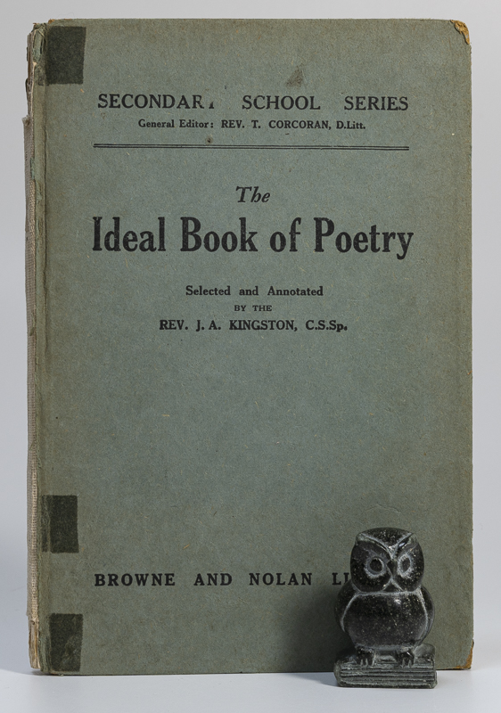 Kingston, Rev. J.A. (editor). The Ideal Book of Poetry. Secondary School Series. With an Introduction by Professor Donovan. Ninth Edition. Dublin et al, Browne and Nolan Limited, ND (Introduction 1915). 18 x 12 cm. vi, 144 pages. With illustrations Stiff cardboard covers. Spine missing. Good condition. Spine missing. Some annotations.